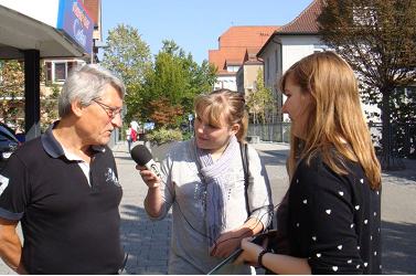 Eine besonders große Gruppe von 30 SchülerInnen betreuten Albrecht Ackermann und Tilman Rau am 26. und 27. September an der Dr. Engel-Realschule in Eisligen. Die Schüler der Klasse 8b wurden von ihrer Lehrerin Christina Rehm bereits vorbildlich auf den Besuch vorbereitet und machten einen entsprechend aufgeweckten Eindruck. Insgesamt sechs Themen recherchierten die Teilnehmer. Die Umfragen werden einerseits auf dem Schulgelände, andererseits im Eislinger Stadtgebiet durchgeführt.