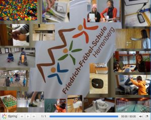 Die teilnehmenden Achtklässler*innen der Friedrich-Fröbel-Schule in Herrenberg entwarfen in den Projekttagen ein „sprechendes Bild“ für die Schulhomepage. Bei der Schule handelt es sich um eine Sonderschule für geistig behinderte Schüler*innen, von denen nicht alle lesen können. Daher wurde sich zunächst auf alles, was klingt konzentriert. Dazu erstellten die Teilnehmer*innen durch Brainstorming eine lange Liste mit Geräuschen, die es an der Schule gibt. Anschließend ging es in Kleingruppen auf Geräuschejagd. Jede Gruppe nahm sechs bis acht Geräusche und Klänge auf, wobei sie erlebten, dass sich nicht jeder Klang für alle gleich anhört. Um die Aufnahmen sinnvoll zu verwenden bot es sich an, etwas zum 50jährigen Jubiläum der Schule beizutragen. So entstand ein „sprechendes Bild“ für die Schulhomepage. Dazu nahmen die Schüler*innen passende Bilder zu den Geräuschen auf. Dies hat den Vorteil, dass die Teilnehmer*innen das Hörbare auch mit Bildern kombinieren und es Außenstehenden so leichter machen konnten, Einblicke in die Schule zu bekommen, wenn sie auf die verschiedenen Bilder klicken. Die Projekttage waren gefüllt mit Spaß und die Schüler*innen waren mit Begeisterung dabei.