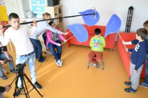 Die Projektgruppe umfasste acht Schüler* mit z.t. körperlicher- und geistiger Behinderung am sonderpädagogischen Bildungs- und Beratungszentrum, Förderschwerpunkt geistige Entwicklung des Rohräckerschulzentrums. Sie machten es sich zur Aufgabe, eine Videoreportage über die Arbeit der Schulsozialarbeiterin an der Schule zu erstellen. Am ersten Projekttag wurden die Schüler*innen in das Thema der Videoreportage eingeführt, wozu sie sich auch ein fertiges Sehstück von Schüler*innen eines vorherigen Projektes in Nürtingen anschauten. Am Nachmittag wurde die Aufnahmetechnik erklärt und exemplarisch an einer kleinen Drehsituation gezeigt. Die Schüler*innen entschieden sich dafür, Spielszenen ohne verbale Dialoge, sondern mit Sprechblasen aus Tonpapier umzusetzen. In Ergänzung dazu sollen die Interviews mit der Sozialarbeiterin und dem Schulleiter durch die Spielszenen leiten. So wurden am zweiten Tag zunächst die verschiedenen Einstellungsgrößen ausprobiert und dann der Drehort aufgebaut und die Sprechblasen gebastelt, damit es dann am dritten Tag mit dem Drehen losgehen konnte. Die Teilnehmer*innen nahmen den Vor- und Abspann, die beiden Interviews und die Arbeit der Schulsozialarbeiterin auf. Dabei arbeiteten sie gut zusammen. Am letzten Workshoptag waren dann noch ein paar Aufnahmen von dem Schulgebäude und die letzten Schliffe der Reportage auf dem Plan bevor sich dann alle begeistert das fertige Ergebnis mit dem Titel „Was macht eigentlich die Schulsozialarbeiterin?“ anschauen konnten.