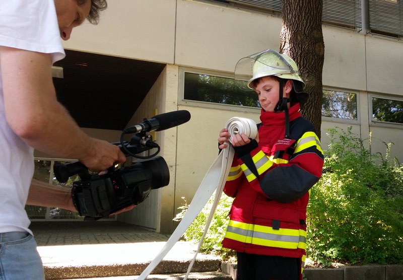Für BlogZehn Schülerinnen und Schüler der achten Klasse an der Helene-Fernau-Horn-Schule für Schüler mit einer Sprachbehindertung in Stuttgart standen vor einer seltenen Herausforderung des diesjährigen Sommers: sich bei hochsommerlichen Temperaturen auf ihr Bewerbungsprojekt zu konzentrieren. Trotz der Hitze waren die Teilnehmerinnen und Teilnehmer mit viel Freude bei der Arbeit. Da sie sich im Vorfeld bereits sehr gut vorbereitet und konkrete Ideen entwickelt hatten, konnten am ersten Drehtag neben Opener und Schlussbildern am Max-Eyth-See auch Aufnahmen einzelner oder mehrerer Schülerinnen und Schüler beim Backen, Skateboardfahren oder Gärtnern im Schulgarten gemacht werden. Eine Schülerin setzte ihren Berufswunsch „Medizinische Fachangestellte“ bildlich um, indem sie beim Zähneputzen gefilmt wurde. Der zweite Tag des Bewerbungsprojekts war dann der Produktion der O-Töne gewidmet. Dass die Teilnehmerinnen und Teilnehmer auch in den Drehpausen gut betreut waren – so recherchierten sie zum Beispiel zu ihren Berufswünschen im Internet oder übten englische Konversationen – sorgte auch dafür, dass alle Beteiligten am Ende rundum zufrieden auf das Bewerbungsprojekt zurückblicken konnten.