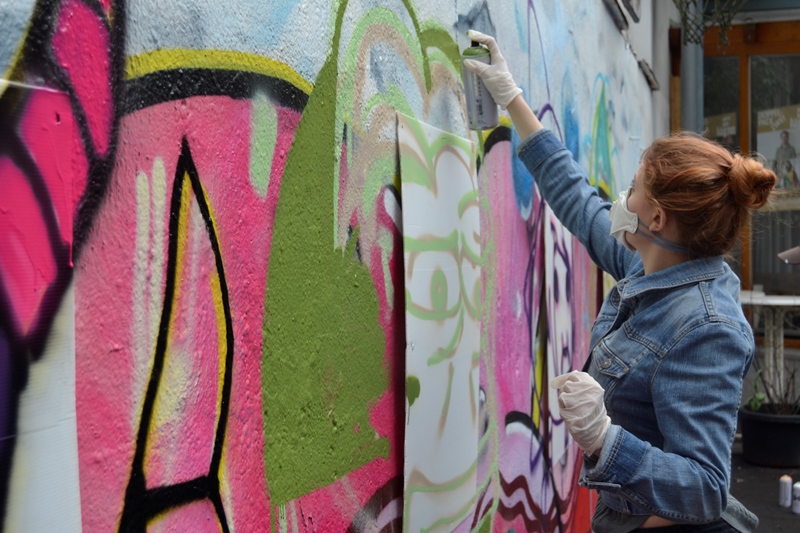 sprayen. Das hat allen sichtlich Spaß gemacht und die bunte Wand konnte sich am Ende des Tages wirklich sehen lassen.