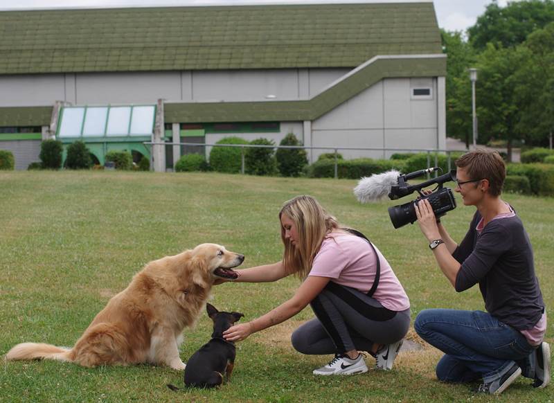 Die Schüler*innen der Klassenstufe 8 der Gemeinschaftsschule in Ilsfeld waren sehr motiviert. Der erste halbe Tag wurde zum Kennenlernen, zur Selbst- und Fremdwahrnehmung und zur Vorbereitung für die nachfolgenden Drehtage genutzt. Die zwei Drehtage fanden an dieser Schule an zwei aufeinanderfolgenden Tagen statt. Gedreht wurden am zweiten Tag fast alle Bilder, die man zum Unterlegen für die O-Töne brauchte. Beispielsweise verschiedene Hobbys (Schwimmen, Singen, Akkordeon…) oder Videomaterial, welches zur Unterstützung von Aussagen zu Fähigkeiten, Praktika etc. benötigt wurde (Draht biegen, mit Kindern spielen, Fahrrad reparieren). Ein Schüler äußerte zu Beginn, dass er Angst vor der Kamera habe und nicht vor ihr sprechen könne – doch er meisterte diese Herausforderung! Eine Schülerin drehte mit ihren eigenen Hunden, die dann auch den Rest der Zeit in der Schule mit dabei waren und alle rundherum erfreuten.