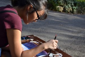 Am Mittwoch war die Gruppe im Werkstatthaus Stuttgart. In vier verschiedenen Workshops konnten die Jugendlichen kreativ werden und neue Techniken ausprobieren. Im Workshop Malerei und Druck portraitierten sich die KulturStarter gegenseitig und arbeiteten mit Tusche, aber auch Kohle. Am Nachmittag wurden die Zeichnungen mit Hilfe des Siebdrucks vervielfältigt.