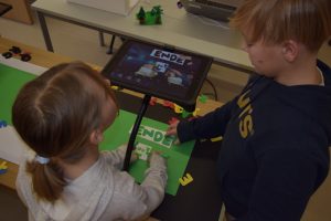 Interessant an dieser Gruppe war, dass sehr viele gerne ein Spiel programmieren wollten. Im Kreativlabor wurden hierfür erst Ideen und Geschichten entwicket, Figuren und Hintergründe geknetet, gemalt oder gebastelt. Um diese mit dem Programm Scratch verarbeiten zu können mussten diese im Anschluss abfotografiert und freigestellt werden. Am Computer wurden dann unterschiedliche Scripte geschrieben und die unterschiedlichen Spielideen nahmen nach und nach Form an.