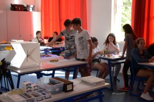 Ende Juni 2019 ging es für unsere Referent*innen zu einem weiteren „Animation Code“. Diesmal war das Ziel eine 7. Klasse bestehend aus 18 Schüler*innen an der Schillerschule in Ettlingen. Gestartet wurde mit einem kleinen Aufwärmspiel. Der Workshop fand unter besonderen äußeren Umständen statt. Doch trotz der großen Hitzewelle in dieser Woche, die sich verständlicherweise manchmal auf die Konzentration auswirkte, gingen die Schüler*innen sehr motiviert zu Werke. Mit Unterstützung der Referent*innen wurden die ersten kreativen Schritte durch Kneten, Malen und Basteln von Figuren und Hintergründen gegangen. Die hieraus entstandenen Ergebnisse wurden im Anschluss abfotografiert und freigestellt, um sie mit dem Programm „Scratch“ verarbeiten zu können. Das Besondere an der Klasse war, dass die zuständige Lehrkraft bereits vor „Animation Code“ mit den Schüler*innen erste Versuche in „Scratch“ und anderen Programmierwerkzeugen gemacht hatte. So haben sich einzelne sogar daran gewagt selbständig einen Bug zu recherchieren und zu erarbeiten. Neben „Scratch“ wurde zusätzlich am ersten Tag „Draw Your Game 2“ verwendet, um den Schüler*innen weitere Eindrücke in das Erstellen eines Spiels zu geben. Dies hat den Schüler*innen große Freude bereitet. So nahmen die entwickelten Ideen am PC schnell Form an. Die entstanden Projekte sind auf der Scratch-Homepage zu sehen und können auch ausprobiert werden.