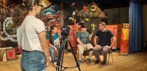 An der Eugen-Neter-Schule in Mannheim war viel los: Einige Schüler*innen probten mit dem Nationaltheater Mannheim eine angepasst Version der Oper „Zauberflöte“ von Mozart ein. Die LKJ-Referetinnen Lara Ducks und Clarissa Schnitzer arbeiteten mit einer weiteren Gruppe Schüler*innen, die eine Dokumentation des Projekt erstellten. Die Doku-Gruppe interviewte die Darsteller*innen, erklärte vor der Kamera das Projekt, filmten Proben und Auftritt und erstellten diesen Dokumentarfilm: