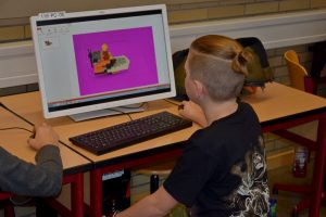 Anschließend fand eine Vermittlung der Grundlagen von Scratch statt, bei der die Teilnehmenden zuerst Einstiegsaufgaben absolvierten, bevor sie sich dem Programmieren ihrer Spiele und Animationen zuwandten. Parallel arbeitete ein anderer Teil der Gruppe in der Kreativwerkstatt an Hintergründen, Figuren und Objekten, die anschließend freigestellt und in ihren Spielen verwendet werden sollten. In Kleingruppen entstanden so zahlreiche Projekte, in denen Kunst und Kreativität mit den Grundlagen des Programmierens verbunden wurden. Bei einer Feedbackrunde zeigte sich, dass auch die Schüler*innen sehr zufrieden mit ihren Ergebnissen waren und viele neue Kenntnisse und Fähigkeiten aus dem Projekt mitnehmen konnten.