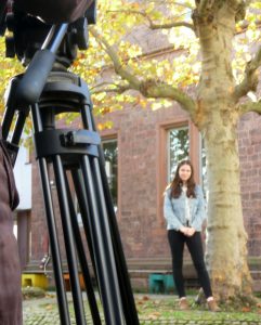 Obwohl die Schüler*innen bei den Aufwärmübungen mit der Theaterpädagogin noch etwas befangen wirkten, war das Eis schnell gebrochen. Die Teilnehmenden zeigten allesamt hohe Motivation und konnten aufgrund von vorher absolvierten Praktika bereits sagen, in welche Richtung sie sich beruflich orientieren wollen. So wurden schnell Drehorte gefunden, an denen die Jugendlichen ihre Stärken bestmöglich vor der Kamera präsentieren konnten.