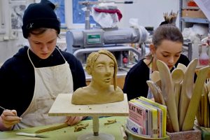 Auch im Keramik-Workshop entstanden am Mittwoch Portraits, allerdings nicht klassisch auf Papier, sondern stattdessen als Tonskulptur. Zuerst bildeten die Jugendlichen zunächst ihren Gegenüber nach, durften ihrer Kreativität dann jedoch freien Lauf lassen und ihre Tonköpfe weiter schmücken mit geflochtenen Kronen, Pfeilen, Hörnern oder Reißzähnen.