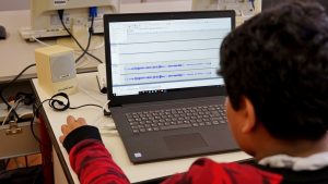 Nun ging es an die Gruppenarbeit. Die Rapgruppe einigte sich darauf, über ihre Abneigung gegen Schule einen Song zu schreiben – mit dem Segen der Lehrkraft natürlich. Während am Raptext gefeilt wurde, war die Klangcollagengruppe schon auf der Jagd nach passenden Geräuschen. Die Hörspielgruppe hingegen startete mit der Ideenfindung, bevor dann ein Skript verfasst wurde. Der Arbeitsprozess wurde immer wieder unterbrochen von kleinen Feedbackeinheiten, in denen die Gruppen sich gegenseitig ihre Fortschritte präsentieren konnten. Diese Zwischenberichte waren ein Ansporn für die Schüler*innen und halfen bei der Fertigstellung der drei Hörstücke, die hier angehört werden können. Die Rückmeldung der Schüler*innen zum Projekt fiel letztendlich sehr positiv aus – alle hatten Spaß und nahmen viel Nützliches aus den zwei Tagen mit!