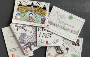Bis zur endgültigen Fertigstellung unseres Passes hat unser Team mit Unterstützung von Frau Förster lange geplant, entworfen, gelayoutet und sogar einen Zeichenwettbewerb in Kooperation mit den Kunstlehrerinnen der 5. Klassen, Frau Dr. Grzonka und Frau Querfeld, ins Leben gerufen. Bei diesem kleinen Wettbewerb durften alle 5. Klässler des Schuljahres 2019/20 ein Cover für den zukünftigen Kulturpass entwerfen. Wir verraten wohl nicht zu viel, wenn wir eingestehen, dass uns die Auswahl der Gewinnercover sehr schwergefallen ist.
