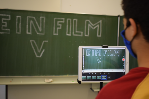 Zum Einstieg animierten die Schüler*innen die Buchstaben ihrer Namen, um ein Gefühl für das Erstellen von Stop-Motion Filmen zu bekommen. Nachdem das gemeinsame Thema beschlossen wurde, teilten sich die Schüler*innen in Gruppen auf und recherchierten zu ihrer Sehenswürdigkeit. Dadurch konnten sie am folgenden Tag direkt mit der Visualisierung ihres Films starten. Sie malten Figuren und Landschaften für ihre Hintergründe. Die Übung am Vortag erleichterte den Einstieg in das Filmemachen deutlich und den Schüler*innen gelang ein konzentriertes Arbeiten bis zum Ende des Tages. Am letzten Tag nahmen die Schüler*innen voller Motivation ihren Ton auf und verpassten ihren Film den endgültigen Schliff. Bei der Premiere von „Unsere Highlights in Ulm“ waren alle sehr stolz auf das entstandene Werk.