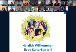 Tag zwei fand digital in Big Blue Button statt. Nachdem kleiner technische Probleme überwunden waren, konnten die KulturStarter Neues lernen. Im Workshop Zeichnen wurde das Auge geschult, aber auch schnell und spontan gezeichnet. Viel Bewegung und Sprache gab es im Workshop Theater, am Ende führe die Gruppe sogar für alle KulturStarter eine Performance auf! Im Workshop StreetArt wurde mit Klebeband das eigene Zimmer künstlerisch gestaltet, aber auch draußen gesprayt. So wurden die Jugendlichen nicht nur im digitalen, sondern auch im realen Raum aktiv und kreativ. Bei der Abschlusspräsentation konnten dann die beiden Workshops aus dem Bereich der bildenden Kunst stolz ihre Werke des Tages präsentieren.