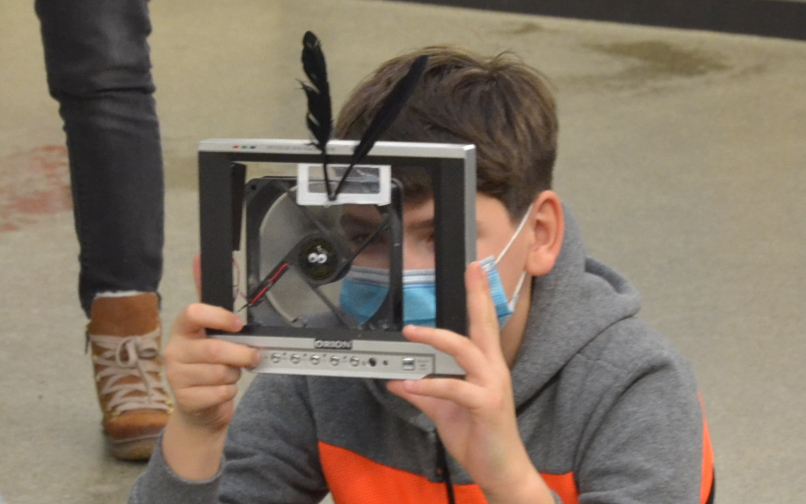 Beim MakerBox Projekt an der Blautopfschule, einer Gemeinschaftsschule in Blaubeuren, nahmen insgesamt 30 Schüler*innen aus zwei sechsten Klassen teil. Bei einer so großen Gruppe mussten die die beiden LKJ Referenten besonders auf sicheres Arbeiten achten und darauf, allen gleichermaßen Hilfestellung anzubieten. Schutzausrüstung, Sicherheitsregeln und genaue Einweisungen waren daher besonders wichtig. Anschließend wurde mit dem Auseinandernehmen des Elektroschrotts begonnen, Dabei konnten die Teilnehmer*innen nicht nur das Innenleben und die Funktionsweise der Geräte erforschen sondern auch spannende Einzelteile finden, die sie für die Gestaltung ihrer Kunstroboter verwenden konnten. Die gewonnenen Bauteile wurden gesammelt und sortiert. Bevor es aber ans Zusammenbauen ging, erfuhren die Schüler*innen einiges über Aktoren und Sensoren, die mit den menschlichen Sinnen verglichen wurden. Anschließend wurden Stromkreise gebaut, in Reihe geschaltet und auch parallel, modifiziert mit Schaltern und Tastern. Die Jugendlichen gingen motiviert an die Aufgabe und testeten auch zusätzliche Konfigurationen aus. Der zweite Projekttag begann mit der Planung der eigenen Kunstroboter. In Gruppen wurde besprochen, welche Funktionsweise und welches Aussehen die Kunstroboter haben sollten. Auf Din-A3-Papier entstanden kreative Entwürfe für die Roboter.