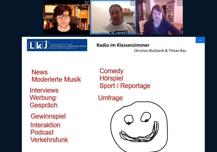 Am 22. Januar 2021 startete das vierte Radio im Klassenzimmer – digital Edition am Eberhard-Ludwigs-Gymnasium Stuttgart. Die 23 Schüler*innen trafen sich online mit den Refernt*innen und begannen nach der gewohnten Vorstellungsrunde direkt mit der Abfrage zum Hörverhalten. Daraus entwickelte sich dann auch eine Diskussion zur Themengenerierung. Bei der ausführlicheren Diskussion, wie die Themen umgesetzt werden könnten, gab es die erste Reduktion – weitere Themen fielen weg, als sich die Schülerinnen und Schüler jeweils für eins der Themen entscheiden mussten. Auf diese Weise blieben fünf Gruppen übrig, die sich dann auch gleich an die Arbeit machten, ihren Beitrag zu planen, das heißt das Thema einzugrenzen, Fragestellung und gewünschte Form zu entwickeln sowie Texte zu schreiben. Darunter auch das allgegenwärtige Thema Corona und wie es den Schüller*innen insbesondere im Homeschooling naheging. Doch auch alle anderen Beiträge waren Herzensthemen der Klasse: die Fußball Bundesliga, Umweltschutz, Fast Fashion und den Aspekt von in game purchases in digital Spielen.