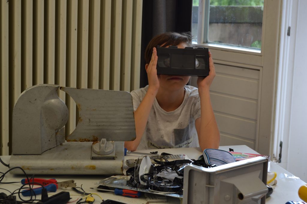 O-Ton der Lehrerin: „das Projekt war auf jeden Fall sehr inspirierend. Allein schon das Privileg, zwei Tage lang intensiv an einem Thema zu arbeiten und das kontinuierlich tiefere Eintauchen in die Materie sind ein Highlight im Schulalltag. Mit großer Begeisterung gingen die Kinder mit Schutzbrillen und Handschuhen an das Auseinandernehmen des mitgebrachten Elektroschrotts. So wurde die Werkstattatmosphäre eröffnet und der Erfindergeist geweckt.“