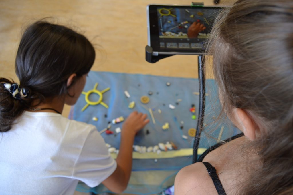 Danach fanden sich die Teilnehmenden in Gruppen zusammen und überlegten sich eine Idee für ihren Film. Das auf den ersten Projekttag folgende Wochenende nutzten die Kinder um Materialien zu sammeln, die sie für ihre Filme benötigten. Die verschiedenen Gruppen hatten viele unterschiedliche Ideen, es entstanden Tutorials, wie man Dinge aus Müll herstellt, kleine Geschichten über Verschmutzung und kleine Helden, die mit ihrem Umweltaktivismus die Welt retten. Insgesamt beziehen sich viele Filme auf das Thema „Müll“, was allerdings nicht verwunderlich ist, da Müllvermeidung eines der Dinge ist, bei der Kinder besonders gut mithelfen können. Zu diesem Aspekt von Nachhaltigkeit hatten viele Kinder den größten Bezug. Am dritten Projekttag beendeten alle Gruppen ihren Film und es ging mit dem Ton weiter. Die größte Herausforderung war dabei, in der Schule einen leisen Raum für die Tonaufnahmen zu finden. Schließlich wurde beschlossen, die Hintergrundgeräusche zu einem Stilmittel zu machen, da die meisten Filme im Schwimmbad oder Park spielten, wo ohnehin andere Kinder wären. Damit waren alle zufrieden und einige fanden es sogar besser als Tonaufnahmen ohne andere Kinder im Hintergrund. Bei einigen Gruppen wurde noch Musik ausgewählt. Aufgrund der knappen Zeit bekamen die Filme ihren letzten Feinschliff durch die Referentinnen. Die Teilnehmenden waren sehr begeistert von dem Projekt und kündigten an, jetzt auch zuhause Trickfilme machen zu wollen.