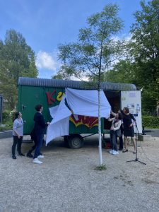 Am Schulfest wurde dann der Wagen vom Kulturteam gemeinsam mit der ehemaligen und aktuellen Schulleitung und Vertreter*innen des Kulturamts und des Kulturlabors Konstanz eingeweiht!