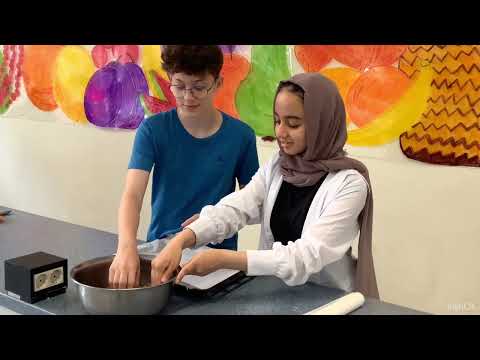Weiter ging es mit den Aufnahmen für die Tutorials. Einige Gruppen entschieden sich in der großen Schulküche verschiedene Rezepte zu drehen, die anderen Teams filmten draußen auf dem Schulhof oder im Klassenzimmer. Die Medienreferent*innen unterstützen die Teilnehmenden bei den Dreharbeiten und trugen dazu bei, dass Brownies, Cookies und Käsekuchen richtig in Szene gesetzt wurden: Mit Zeitraffer wurden Aufnahmen der Teigzubereitung gemacht oder auch das Bestreichen der Brownies in Slow Motion gedreht.