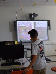 Am zweiten Tag begannen die Teilnehmenden mit dem Erstellen der Beitragsbilder, wobei viele Bilder vor dem Greenscreen machen wollten und tolle Ideen hatten. Für manche Jugendlichen war das Arbeiten am Rechner und mit dem Bildbearbeitungsprogramm eine Herausforderung, aber alle lernten Viel dazu und erstellten interessante Endergebnisse.