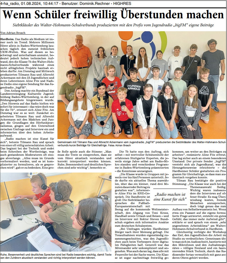 Hier entstanden dabei fünf ganz unterschiedliche Beiträge von Sport über Reisen bis zum Schulsystem, zu dem sogar der Rektor für ein Interview bereit stand. Auch der Reporter der Rhein Neckar Zeitung, der das Projekt für einen Artikel besuchte beschreibt in seinem Artikel eine tolle produktive und angeregte Stimmung bei dem Projekt, die man in den Beiträgen hören kann!