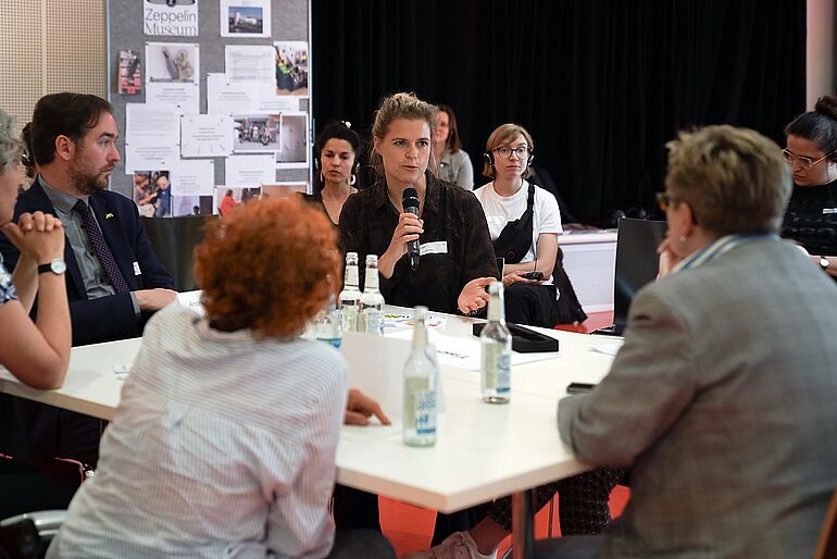 Vermittlungsangebote finden sowohl analog als auch digital statt. Die Online-Angebote konzentrieren sich auf Podcasts, die Diskursplattform debatorial® und digitale Museumstouren. Das analoge Angebot umfasst die Open House!-Reihe mit Vorträgen, Lesungen, Events u.a. begleitend zu den Ausstellungen, Workshops für unterschiedlichste Altersgruppen sowie ein breit gefächertes Führungsangebot. Das Thema Inklusion spielt für das Zeppelin Museum bei all seinen Aktivitäten seit geraumer Zeit eine große Rolle, angefangen von barrierefreien Angeboten im Kontext der Ausstellungen bis hin zu eigens ausgearbeiteten Führungsangeboten für Menschen mit spezifischen Bedürfnissen wie etwa blinde oder gehörlose Personen.