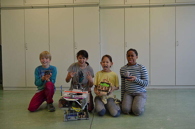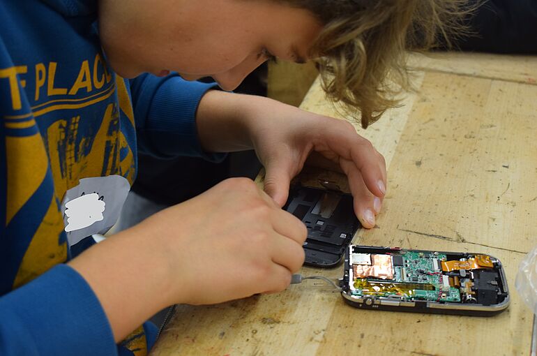 Gemeinsam mit zwei Medien- und Kunstreferent*innen werfen die Teilnehmenden einen Blick in das Innere ausgedienter Elektronik (Tastaturen, Drucker, Elektrospielzeug, etc.) und lernen die Grundlagen von Elektrotechnik und Upcycling kennen. Sie erstellen kleine Stromkreise am Steckbrett (Batterie, Schalter, Widerstand, LED) und entwickeln erste Ideen für einen eigenen Kunstroboter oder eine kleine Maschine. Welche Technik wird dafür benötigt? Wie soll das Gehäuse und somit die Maschine/der Roboter aussehen? Aus der Idee entwickeln sie dann ihre eigenen künstlerisch-technischen Produkte mit Hilfe von Lötkolben, Kabeln, LEDs, Solarzellen und allerlei spannenden Elementen, die noch viel zu schade für den Abfall sind.